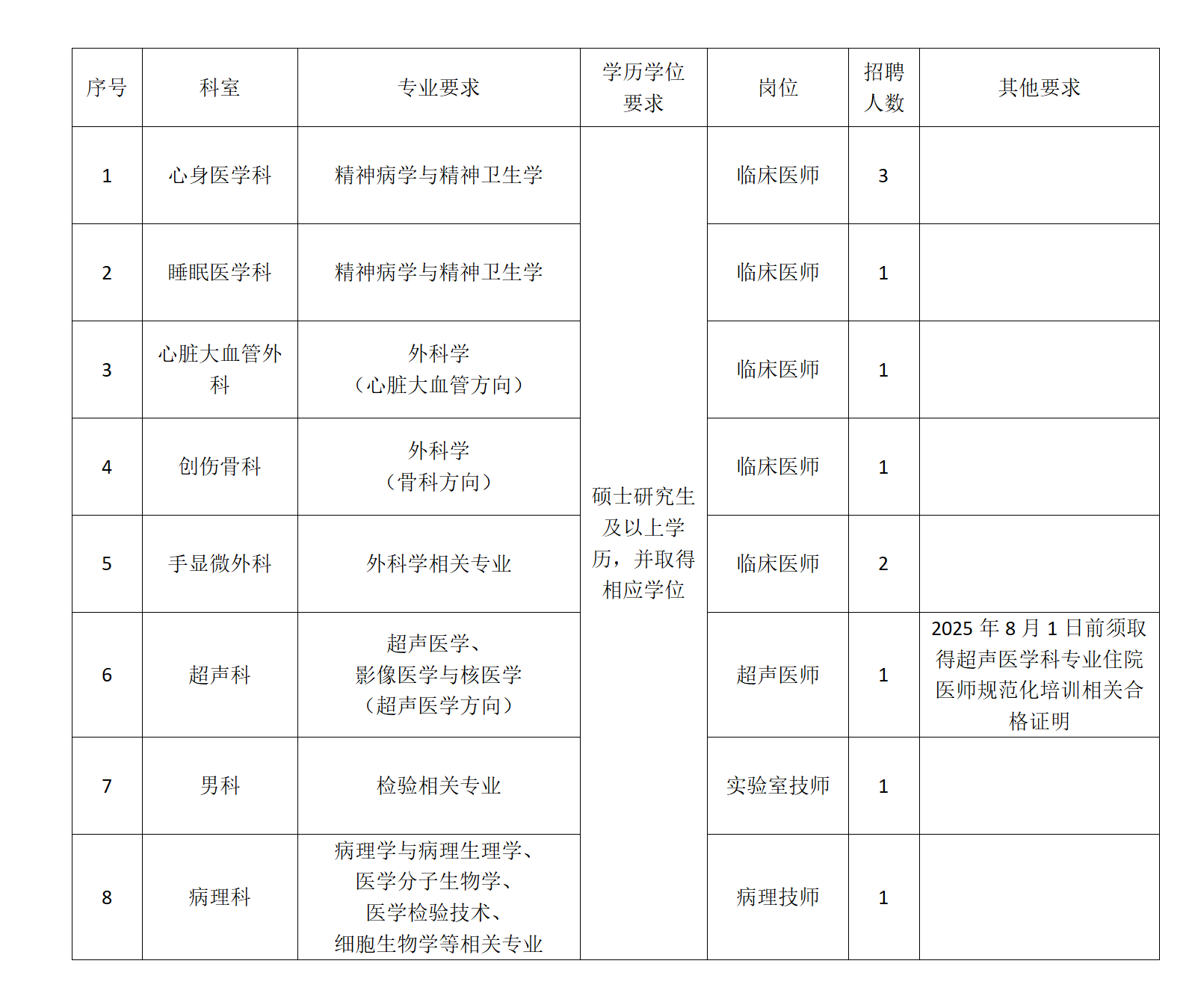 因医院业务发展需要,经医院研究决定,现面向全国招聘高层次卫生专业技术人才,热忱欢迎广大优秀人才踊跃报名。